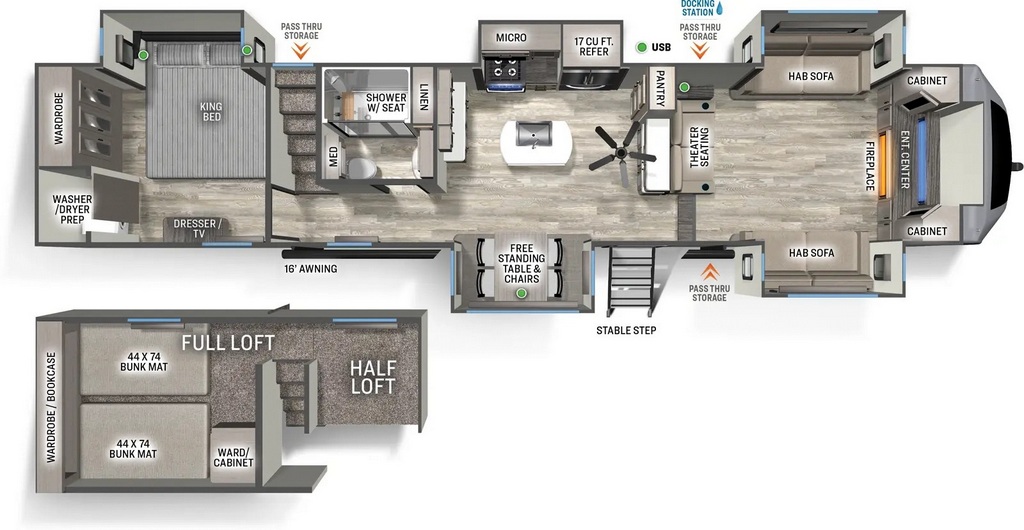 * Full loft w/(2) 44 x 74″ Teddy Bear bunk matts for the little ones,
